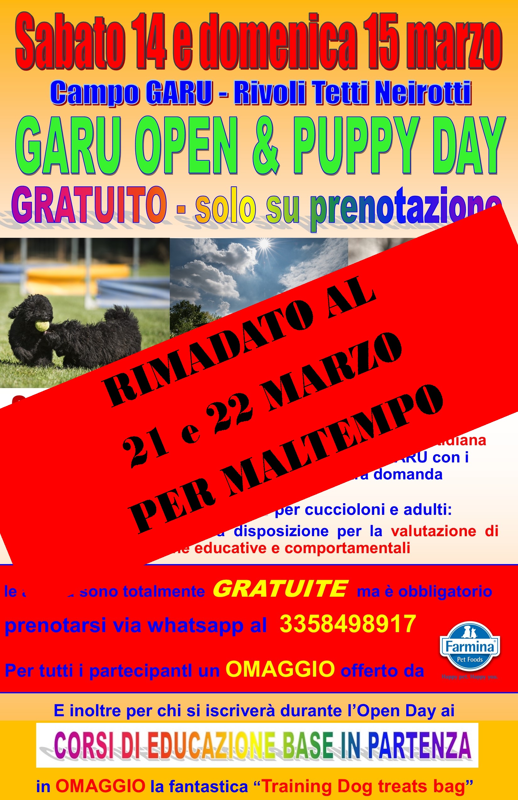 OPEN & PUPPY DAY RINVIATO AL 21 e 22 MARZO